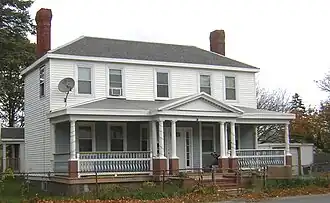 The Brown–Hodgkinson House is a historic house at 42 Bicknell Street in Quincy, Massachusetts. This two story wood-frame house, built in 1832, was one of the first in what is known as the Germantown neighborhood. It was built by Captain Charles Brown, who moved here from Provincetown, seeing the beginning of growth of a fishing community. The house is predominantly Federal in character (despite a construction date that is late for that style), and received Queen Anne detailing in the 1880s.[2]