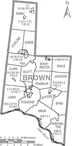 7. ^ a b c d e f g h i j k Brown County OH - Google Maps (accessed 9 June 2019)