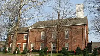 Brown County Courthouse Historic District is a historic courthouse and national historic district located at Nashville, Brown County, Indiana. It encompasses three contributing buildings: the courthouse, Old Log Jail, and the Historical Society Museum Building. The Brown County Courthouse was built in 1873–1874, and is a two-story, Greek Revival style brick building. It has a gable roof and two-tiered, flat-roofed frame tower. The Old Log Jail was built in 1879, and is a small two-story log building. It measures 12 feet by 20 feet, and was used as a jail until 1922. The Historical Society Museum Building, or Brown County Community Building, is a two-story, rectangular log building. It was moved to its present location in 1936–1937. The Works Progress Administration funded the reconstruction and remodeling of the building.[2]: 2–4