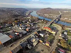 Brownsville is connected to the satellite community of West Brownsville (in Washington County) by the Brownsville Bridge completed in 1914, which spans the Monongahela River. In 1960, the Lane Bane Bridge was constructed just downstream, and path of U.S. Route 40 was moved to the new high-level structure and new four lane highway by-passing old Route 40 until the two merged in the small bedroom neighborhood known locally as Malden.[i][24] In the heyday of Conestoga wagon migration travels and with the congestion of Brownsville's hilly terrain, the flat lands about Malden just two-to-three further on offered rare open spaces for west-bound travelers to camp and recuperate from the rigorous mountain descent.