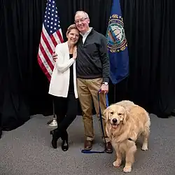 Warren and Mann in 2019 with their golden retriever, Bailey