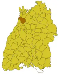 Bruchsal was a district (Kreis) in the administrative region of Nordbaden in Baden-Württemberg, Germany.[1] The district consisted of 5 cities and 33 towns. The town of Bruchsal was the seat of the district and the license plate code was BR. Bruchsal district was dissolved as a result of the district reform effective 1 January 1973, when it was merged into the district of Karlsruhe.
