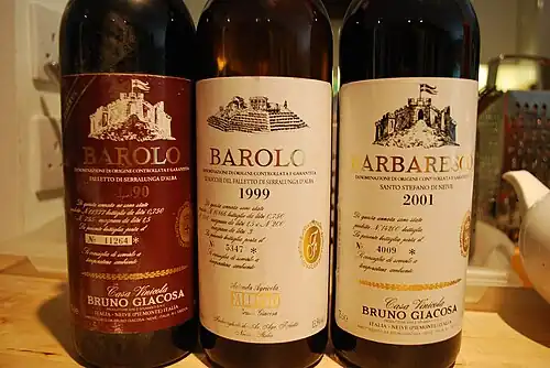 Making wine only from purchased fruit from select vineyards, Giacosa worked to obtain what he deemed the best grapes available from an established network of growers dedicated to producing quality.[2][4] During the 1960s Giacosa was considered one of the three significant wine producers of Barbaresco, along with Gaja and Produttori del Barbaresco,[5] who demonstrated "the full potential of [Barbaresco]".[6]