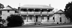 Blaxland built Brush Farm house (the second on the farm, the first being a more modest structure down the gully to the west of the current Brush Farm house) in 1820.[11] A shale mine/quarry on the farm probably produced cement mortar used in construction of the house. The central core of the house was built c. 1819–20 (Buttrey, 2006 (38) says 1819–21, noting the original house was a four-room, two storey dwelling with entrance hall and upper hall, on sandstone foundations with brick walls, over a cellar), east and west wings added during the 1820s with stables and outbuildings, landscaped grounds with a carriage loop.[12] For many years, due to its elevated position, a site on the property was used as a signal station to relay messages on ship arrivals at South Head. These were relayed via Observatory Hill and Gladesville to Government House at Parramatta.[8][1]