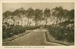 The origins of the park date back to 1888, when 6 hectares of suburban forest were landscaped, laying the groundwork for the park. Between 1894 and 1895, the creation of Süd Park began, during which the park's area was expanded.[34] In 1910, the City Magistrate of Katowice provided financial support for the planting of trees along T. Kościuszko Street. In 1925, the park was named in honor of Tadeusz Kościuszko.[34]