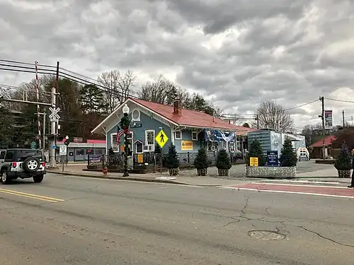 The train station, operated by the Great Smoky Mountains Railroad, provides round-trip excursions through the Nantahala Gorge and along the Tuckasegee River.[8][9][10] Seasonal and themed round-trip excursions, including the Polar Express, are also available.[11][12] Tickets and information are located in the depot, while public restrooms are located at an adjacent stand-alone building. Operating hours will vary depending on scheduled excursions planned for day.