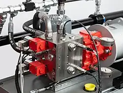 Bucher Hydraulics develops, manufactures and sells hydraulic and electronic components.[56] The company develops, manufactures and sells pumps, motors, valves and manifold block systems, cylinders, power units and power electronics.[57] Production facilities are located in Europe, the United States,[6] China[44] and India.[58]