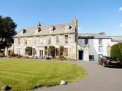 Buckland Manor, or Buckland House, a Grade II* listed mansion remodelled in the 18th century,[8] was still occupied in 2014 by descendants of the Incledon-Webber family, formerly prominent in the political and commercial life of nearby Barnstaple and North Devon. The south front is a rebuilding of 1762, with seven bays, a porch with Tuscan columns and a plain cornice, and four attic dormers. Two rear wings – one from the early 17th century, the other later and extended in the 18th century – form a three-sided courtyard. A further large three-storey wing was added to the right, set back, in the 18th century.
