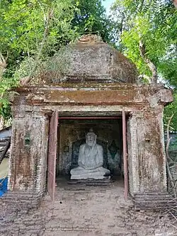 The Buddha statue in this temple is 5' and 3 inch height. In the pedestal of the statue, a not so clear Tamil inscription is found. Earlier this statue was found at a distance of one furlong from this place.[3] The usual iconographical features such as coiled her, flame atop the head, elongated ears and upper garment are found in this statue.[4]