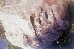 Measurements of the boulder: 155 × 237 cm H. 153 × W. 110 × D. 09 cm Material: Limestone Reference: Published Orientation: Facing north Map ref. Topographic sheet. 43 B/5 (8948)[6]