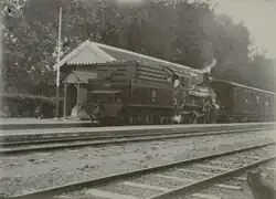 A steam train stopped at Buduran station, circa 1900s.