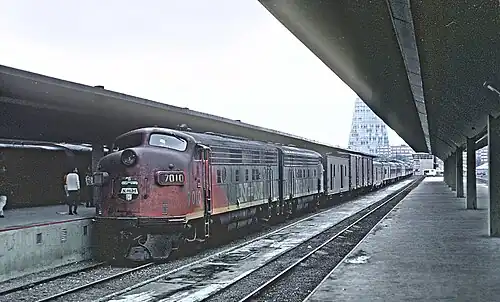 ![]() An EMD FP9 at the platforms in 1966 | |||||||||||||||||||||||||||