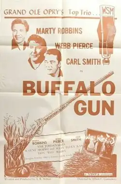 Buffalo Gun is a 1961 American western film directed by Albert C. Gannaway and starring Marty Robbins, Webb Pierce, Carl Smith, Mary Ellen Kay.[2][3] The film was shot in 1957 in Ray Corrigan Ranch, California and released in 1961.