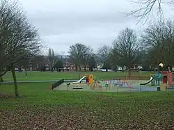 The park has an area of about 6 hectares (15 acres). It was formerly the site of Old Buffery Colliery; it was purchased from M & W Grazebrook in 1891, and opened in 1893 with a range of recreational facilities. The garden was maintained by council staff. For many years there was a conservatory, or Glass Pavilion; there were four tennis courts, a cycle track, a bowling green and a putting pitch.[1][2][3]
