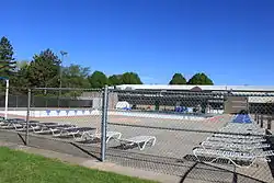 There is a large public swimming pool and a smaller children's wading pool with interactive toys. Buhr Park also includes 39 acres (160,000 m2) of rolling hills, picnic areas with barbecue grills, a children's play area, softball diamonds, soccer fields and outdoor tennis courts. The Cobblestone Farm and Museum is located on the park grounds.[2]