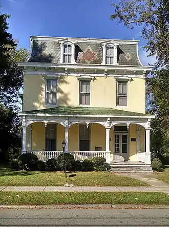 Building at 216 Bank Street, also known as Holland House Apartments, is a historic home located at Suffolk, Virginia. It was built about 1885, and is a 2+1⁄2-story, three bay stuccoed brick Second Empire style building. It has a polychromatic slate mansard roof and a full-width, one-story, hipped roof front porch. It was built for Colonel Edward Everett Holland as a single-family dwelling. It was occupied by the Suffolk Elks Lodge No. 685 from 1940 to 1965, then converted to a six-unit apartment building.[3]