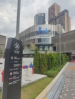The Mitsui Shopping Park LaLaport Bukit Bintang City Centre (Japanese: 三井ショッピングパークららぽーと ブキッ・ビンタンシティセンター, Mitsui shoppingupāku rarapo ̄ to buki~tsu Bintan shiti sentā),[19] also known as LaLaport Bukit Bintang City Centre and LaLaport BBCC, is a Japanese lifestyle shopping mall located within BBCC. It is a RM1.6 billion mall under a joint venture agreement between BBCC Development Sdn Bhd and Mitsui Fudosan Co. Ltd. (Asia), a real estate company of the Mitsui Group.[20] The entire space has a total built-up area of 1,400,000 square feet (130,000 m2) across 6 floors with mix of local and international retail brands including some exclusively from Japan.[21] It consists of approximately 400 stores spanning across 82,600 square metres of retail floor space.[22]