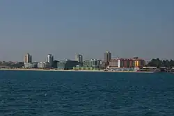 The Bulgarian Black Sea Coast (Bulgarian: Черноморие, romanized: Chernomorie), also known as the Bulgarian Riviera,[1] covers the entire eastern bound of Bulgaria stretching from the Romanian Black Sea resorts in the north to European Turkey in the south, along 378 km of coastline. White and golden sandy beaches occupy approximately 130 km of the 378 km long coast. The region is an important center of tourism during the summer season (May–October), drawing millions of foreign and local tourists alike and constituting one of the country's most popular tourist destinations. Prior to 1989 the Bulgarian Black Sea coast was internationally known as the Red Riviera. Since the fall of the Iron Curtain, however, its nickname has been changed to the Bulgarian Riviera.