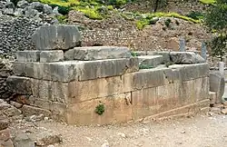 Base of the statue of the Corcyrean Bull at Delphi.