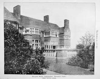 Bullers Wood facilities are a combination of several refurbished historical houses and modern additions. Named after an ancient forest, the original Bullers Wood house was built in the 1860s and was owned by the Sanderson family from the 1870s. Scotsman John Sanderson, who had made his money sheep farming in Australia, employed local architect Ernest Newton (1856–1922) to extend the house in 1889.[2][3]