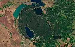 A satellite image of the Burabay National Park (Sentinel-2 L1C data, modified)