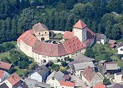 In 1185 Vilseck was first mentioned as a part of the Prince-Bishopric of Bamberg. One document from 1205 mentioned a Megelaus of Dagestein, and after the Dagestein dynasty died out, the lords of the Dagestein castle began to use the name of the burgeoning city of Vilseck. In the 15th century the complex was converted into a water castle. During the feud between Götz von Berlichingen (Götz of the Iron Hand) and the Roman Catholic Archdiocese of Bamberg, the castle was sacked and plundered, after which it was again rebuilt. In 1552 the castle was conquered by Albrecht Alcibiades, Margrave of Brandenburg-Kulmbach and thereafter used primarily as a granary and prison. Around 1730 large scale reconstruction occurred, and on the heels of secularization, parts of the castle were sold off to citizens of Vilseck. In the years 1796-7 the bandit leader Franz Troglauer was held prisoner in the castle for several months. Today the castle is owned by the city, with extensive renovations of the keep occurring between 1999 and 2002.