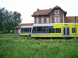 The Burgenlandbahn is a brand that DB Regio uses for their local passenger rail transport in southern Saxony-Anhalt, Germany. Since 1999, it has served several branch lines, some of them have been canceled in the meantime. With the Burgenlandbahn great hopes were combined to secure the area network by low operating costs despite low population density permanently.[1]