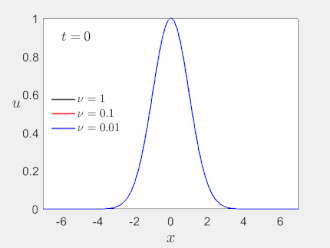 The reason for the formation of sharp gradients for small values of becomes intuitively clear when one examines the left-hand side of the equation. The term is evidently a wave operator describing a wave propagating in the positive -direction with a speed . Since the wave speed is , regions exhibiting large values of will be propagated rightwards quicker than regions exhibiting smaller values of ; in other words, if is decreasing in the -direction, initially, then larger 's that lie in the backside will catch up with smaller 's on the front side. The role of the right-side diffusive term is essentially to stop the gradient becoming infinite.