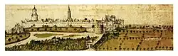 In the 13th century, approximately 35 noble families with around 100 Burgmannen constituted the Burgmannschaft. The composition of this group fluctuated significantly over the centuries due to genealogical changes and political circumstances.[39] The first known Reception Statute dates back to 1478 and aimed to maintain the homogeneity of knightly status among new members.[40] From this point, proof of entitlement to inherit a castle fief was no longer mandatory; instead, a fee of 100 guilders was required, which was exceptionally high for the time.[41]