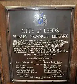 3. ^ Humble, Liz (January 2018). Burley Branch Library, Leeds: Heritage Statement (Report). Humble Heritage. Access via leeds.gov.uk, within planning application 18/00122/LI.