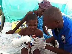 BAN also initiated the DR & Haiti Burn Care Network, which seeks to improve burn care and treatment in the region. Since 2010, BAN has treated over 200 burn survivors through 6 medical missions, distributed over 50,000 tons of medical supplies and equipment, and sponsored several surgeons on medical exchange programs.[14][15] In order to improve communication between aid workers and local victims, BAN launched the iOS app "French Creole for Aid Workers" in 2011.[16]