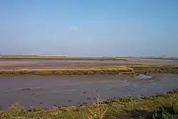 To the east of the Burnham Overy creek, the former salt marshes between dry land and the sand dunes have been reclaimed to form fresh water meadows, part of the Holkham estate. A one-and-a-half-mile (2.4 km) long footpath links Burnham Overy Staithe to the sand-dunes and beach, running along the crest of the embankment which protects these water meadows from the creek.[5]