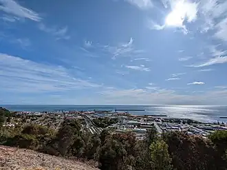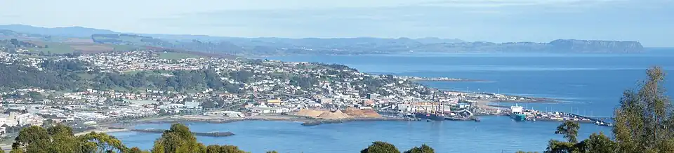 Burnie (/ˈbɜːrni/ BER-nee;[3] pirinilaplu/palawa kani: Pataway)[4][5] is a port city located on the north-west coast of Tasmania, Australia. It is the fourth largest city on the island, located approximately 325 kilometres (202 mi) north-west of the state capital of Hobart, 147 kilometres (91 mi) north-west of Launceston, and 47 kilometres (29 mi) west of Devonport. Founded in 1827 as Emu Bay, the township was renamed in the early 1840s after William Burnie, a director of the Van Diemen's Land Company,[6] and proclaimed a city by Queen Elizabeth II on 26 April 1988.[7] As of the 2021 census, Burnie has a population of 19,918, with a municipality area spanning 600 square kilometres (230 sq mi), administered by the City of Burnie.[8]