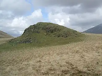 It is the subject of a chapter of Wainwright's book The Outlying Fells of Lakeland.[3] It reaches 1,105 feet (337 m) and Wainwright describes an anticlockwise circuit from Boot. He says: "Its proliferation of ancient remains makes it a happy hunting ground for walkers with an eye for relics of days long past", mentioning the presence of four stone circles.