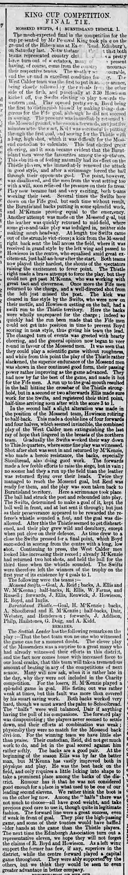 - ^ "Burntisland Thistle, 5; Broxburn Shamrock, 1". Lothian Courier: 3. 9 April 1887.