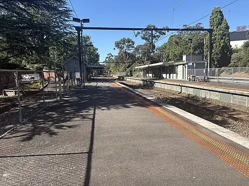 ![]() Southbound view from Platform 2, March 2025 | |||||||||||||||||||||||||||||||||||||||||||||||||||||||||||||||