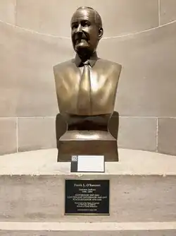 Frank O'Bannon is a public artwork by American artist Kenneth G. Ryden, located in the Indiana Statehouse rotunda in Indianapolis, Indiana. The 700-pound (320 kg)[1] bronze bust was commissioned by the state[2] to honor the memory of Indiana's 47th governor,[3] Frank O'Bannon. The piece was cast at the Anderson University Art Foundry in 2005[4] and presented to the state in February 2006.[5]