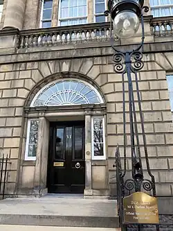 ![]() Top: Charlotte Square elevation of Bute House Bottom: Plaque at the main entrance to Bute House | |