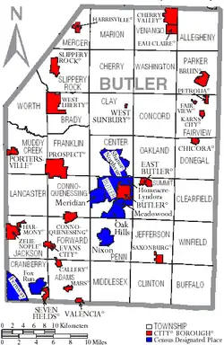 - ^ "2020 CENSUS - SCHOOL DISTRICT REFERENCE MAP: Butler County, PA" (PDF). U.S. Census Bureau. Retrieved July 15, 2024. - Text list