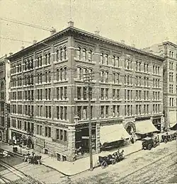 One of Seattle's most elegant hotels, the building that was to become the Butler Hotel was built shortly after the Great Seattle Fire.[2] Some years prior, Hillory Butler had owned and operated a truck garden on the quarter-block lot practically center of town and lived there in a small house. One of his conditions for the erection of a major building on his property in 1875 was that it would bear his name in perpetuity.[3][4] The pre-fire Butler was a three-story wooden building.[5]