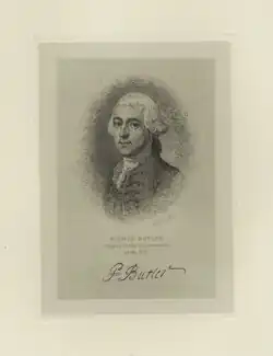 Butler was the third son of an Irish baronet and an officer in the British Army,[4] who came to the Thirteen Colonies to quell a 1768 uprising in Boston.[5] He married Mary Middleton in 1771, an heiress from a South Carolina slaveholding family. He took the American side in the Revolutionary War, serving as Adjutant-General of the South Carolina Militia.[5] He was one of South Carolina's four delegates to the 1787 Constitutional Convention, at which he was an ardent defender of slavery.[5] He served in the U.S. Senate from 1789 to 1796 and returned to fill out an unexpired term, 1803–1804.[5]