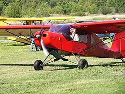 The aircraft is constructed with a welded 4130 steel tube fuselage and aluminium wings, built up from a D-cell on an I-beam spar. The aircraft is covered with painted aircraft fabric. The wing is braced by a V-strut with jury struts. The landing gear is of taildragger configuration, with bungee suspended main wheels and a sprung, steerable tailwheel. The aircraft has standard dual controls, adjustable left hand control stick, adjustable seats and a 44 in (112 cm) wide cabin. Flaperons are optional and reduce the stall speed to 27 mph (43 km/h) from 35 mph (56 km/h).[3][6]