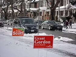 NDP and Liberal election signs in Toronto-Danforth
