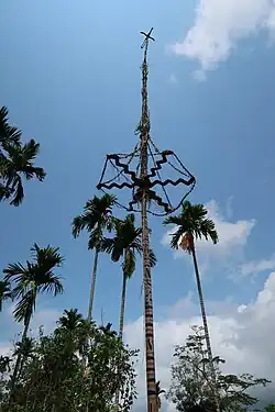 The Viet people set up the cây nêu on the 23rd day of the 12th lunar month, to prevent the devil from coming to disturb the homeowner during the days when Ông Công - Ông Táo returned to heaven. Some other ethnic groups such as Tày and Nùng in the northern mountainous areas such as Hà Giang, Tuyên Quang, Cao Bằng, Lạng Sơn, Bắc Kạn, Lào Cai, Yên Bái again plant this cây nêu on the afternoon of the 30rd day of the 12th lunar month. Hmong people build the cây nêu in the Gầu Tào festival from the 3rd to the 5th day of the first lunar month, the 7th day of the first lunar month is the summer day, the San Diu people build the cây nêu in the Cầu Mùa Festival.[1]