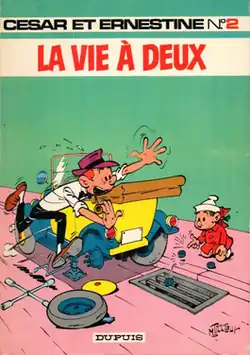The revival of César's gags in Spirou gave the series a new lease of life. Editions Dupuis took advantage of the situation to bring out a first large-format album in 1971, entitled L'école des gags.[16] Paperback and in color, the series was renamed for the occasion César et Ernestine (for publications in Spirou, it always bore the name César). The second album, entitled La vie à deux,[17] came out a few months later.[18] The third volume, Quel métier!, in 1972.[19] The fourth volume, Au fil des mauvais jours, was not released until two years later, in 1974.[20] Despite these four albums, many of the César et Ernestine gags published in Le Moustique and Spirou remained unpublished.