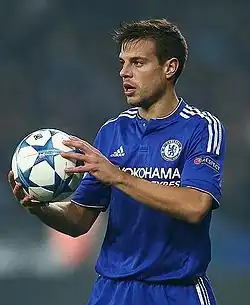 César Azpilicueta Tanco (Spanish pronunciation: [aθpiliˈkweta],[5] born 28 August 1989) is a Spanish professional footballer who plays as a full-back or centre-back, most recently for La Liga club Atletico Madrid.