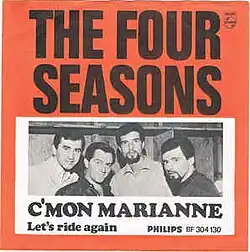 "C'mon Marianne" hit the charts less than a month after lead singer Frankie Valli's "solo" (with Four Seasons participation) hit, "Can't Take My Eyes Off You", hit No. 2. Originally on the New Gold Hits album, a different version of the song was distributed on promotional singles distributed to disk jockeys and released commercially, but when people did not react positively to a recording that was slower than and mixed differently from the "more familiar" LP version, the single was replaced with the album version. Ultimately, "C'mon Marianne" reached the No. 9 position on the Hot 100.[4]