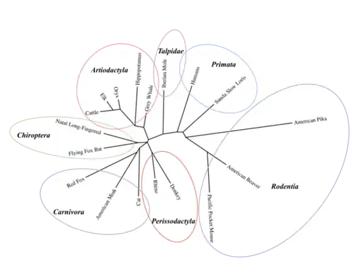 C20orf141 orthologs are found only in mammals, specifically in the infraclasses metatheria and eutheria.[8] Orthologs of c20orf141 are specifically found in Primata, Rodentia, Artiodactyla, Perissodactyla, Talpidae, Chiroptera, and Carnivora.[10] Within eutheria, c20orf141 orthlogs are only found in opposums.[10] C20orf141 has no known paralogs.[10]