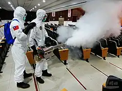 The virus was confirmed to have spread to Taiwan on 21 January 2020, with the first case being a 50-year-old woman who had been teaching in Wuhan, China.[6] The Taiwanese government integrated data from the national health care system, immigration, and customs authorities to aid in the identification and response to the virus. Government efforts are coordinated through the National Health Command Center (NHCC) of the Taiwan Centers for Disease Control, established to aid in disaster management for epidemics following the 2003 SARS outbreak.[7][8] The Journal of the American Medical Association says Taiwan engaged in 124 discrete action items to prevent the spread of the disease, including early screening of flights from Mainland China and the tracking of individual cases.[9][10]