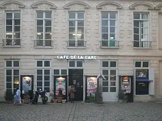 The Café de la Gare (French pronunciation: [kafe də la ɡaʁ]) is a dinner theater located at 41, rue du Temple in the 4th arrondissement of Paris. It lies in a square hidden between Notre Dame de Paris and the historic Marais district.[1] It was originally created in 1968 by a close-knit group of comedy actors who fixed up an old factory near the Gare de Paris-Montparnasse in the 14th arrondissement. It was not until 1972 that the Cafe moved to its present location where it has become the largest and most famous[2] fringe theater in Paris with a house that seats 450.